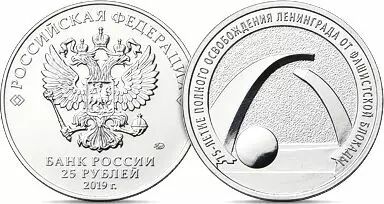 Pièce Russie 25 Roubles 2019 - Libération de Léningrad en 1944