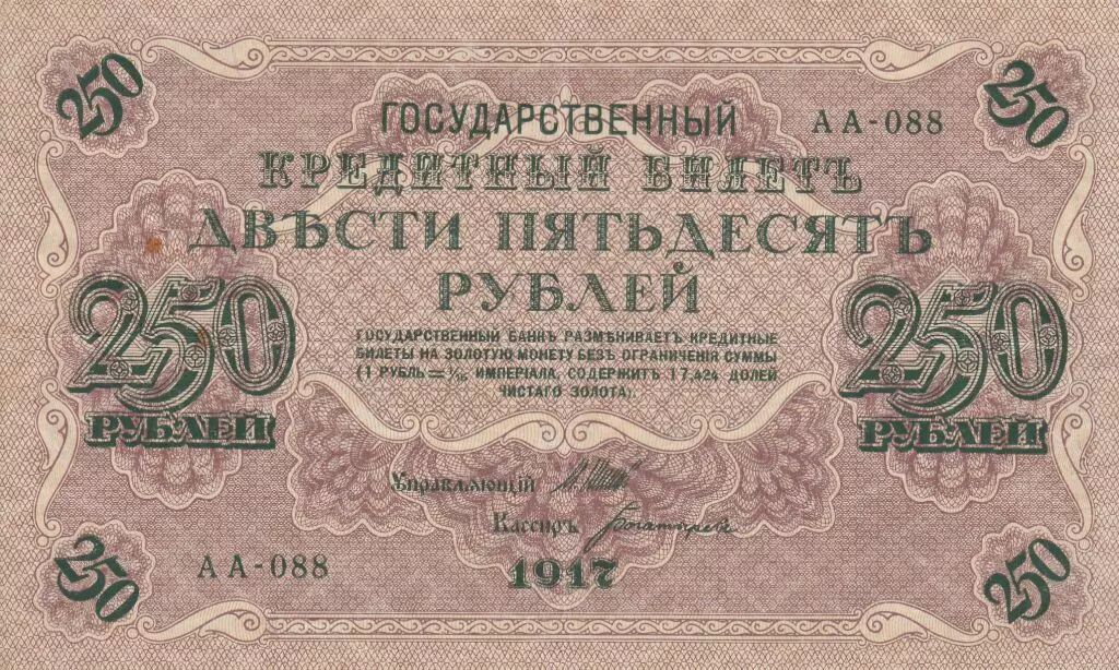 Billet Russie 250 Roubles 1917 - Lilas et Noir. Aigle au verso