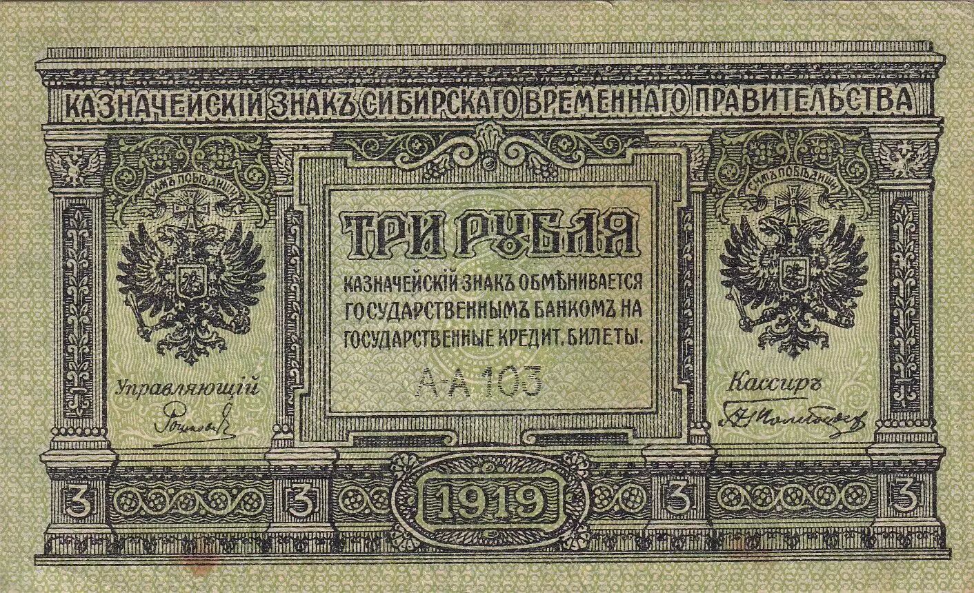 Billet Russie 3 Roubles - Sibérie & Oural - 1919 - P.S827