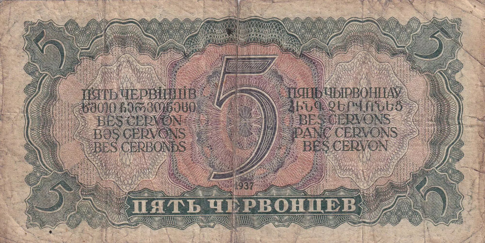 Billet Russie 5 Chervontsev - Lénine - 1937 - P.204