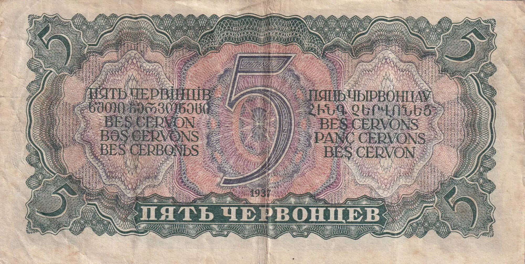 Billet Russie 5 Chervontsev - Lénine - 1937 - P.204