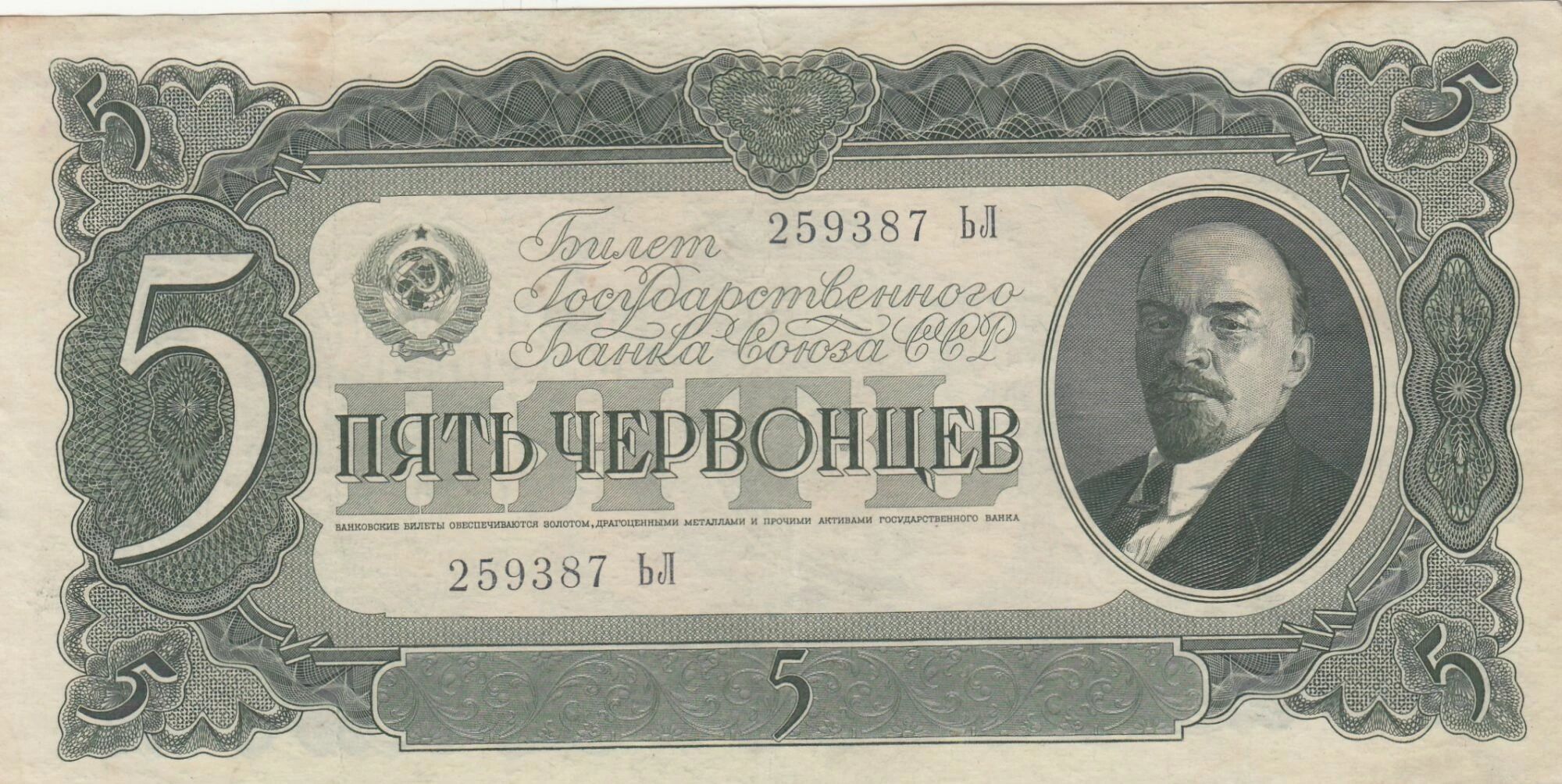 Ce billet de 5 chervontsev témoigne du contexte historique et politique de l'Union Soviétique dans les années 1930, une période de consolidation du pouvoir soviétique et de promotion de l'idéologie communiste.