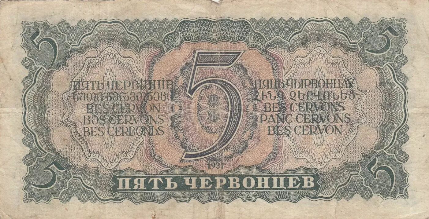 Billet Russie 5 Chervontsev - Lénine - Série Ab - 1937 - P.204