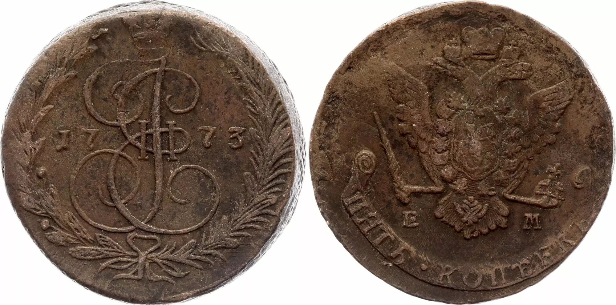 Pièce Russie 5 Kopeks - Catherine II - 1773 EM Ekaterinburg