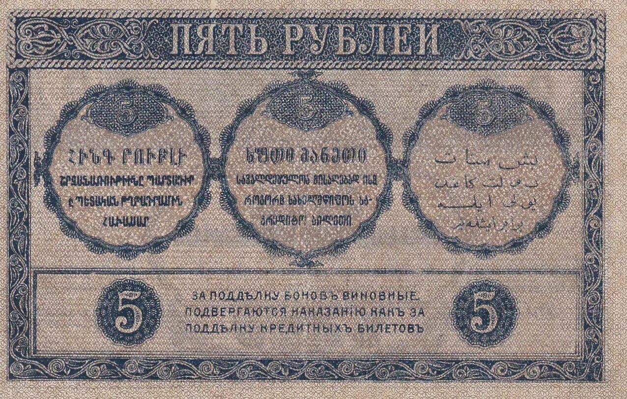 Accueil > Archivage > Russie 5 Roubles - Transcaucasie - 1918 - P.S603