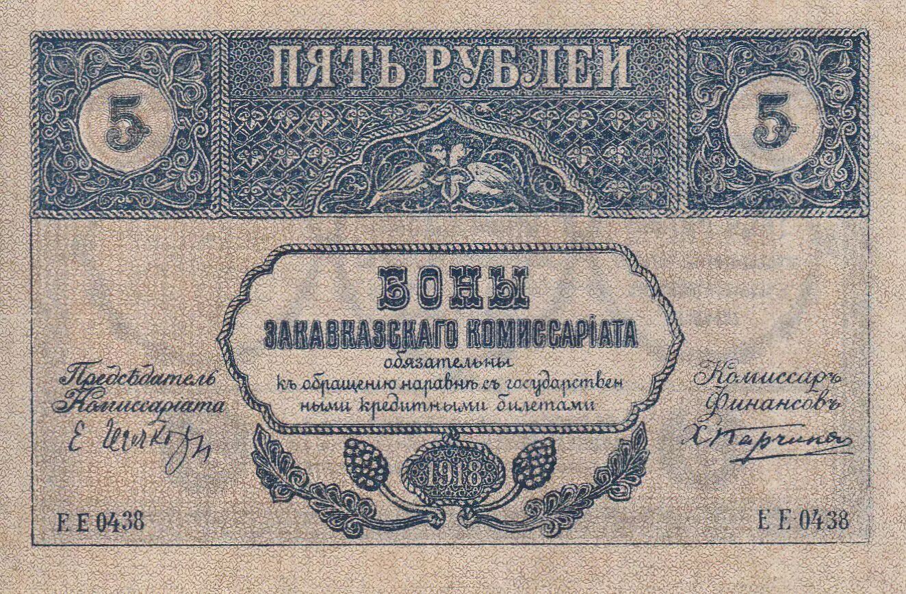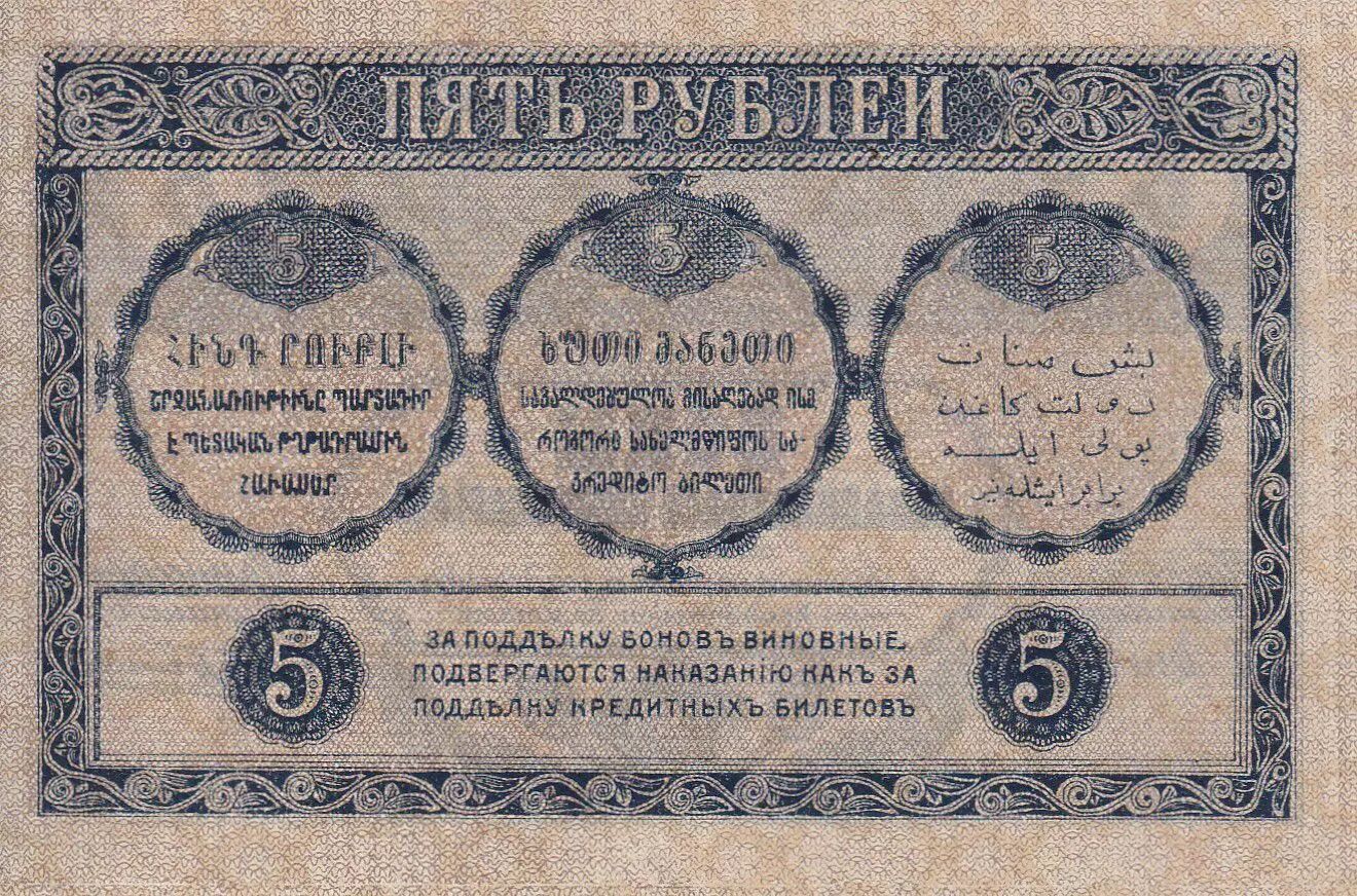 Billet Russie 5 Roubles - Transcaucasie - 1918 - P.S603