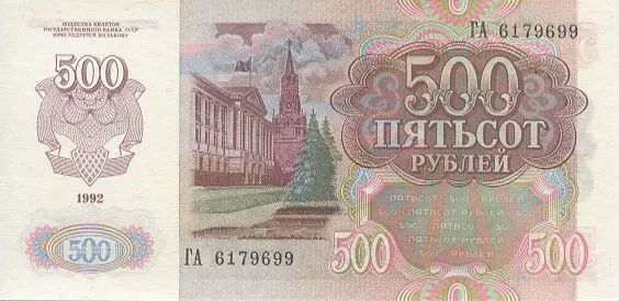 Billet Russie 500 Roubles Lénine - Kremlin 1992