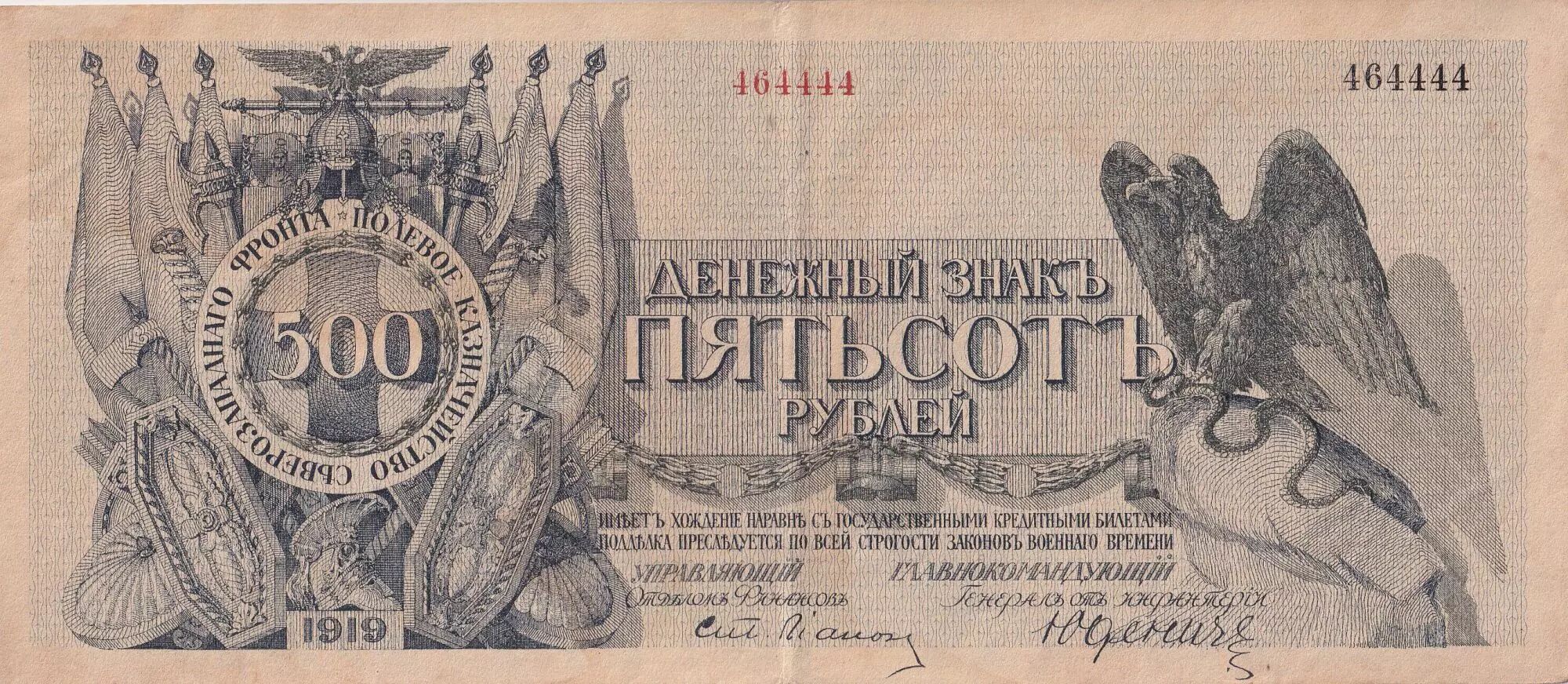 Accueil > Archivage > Russie 500 Roubles - Russie du Nord Ouest - 1919 - Numéro 464444 PS.209