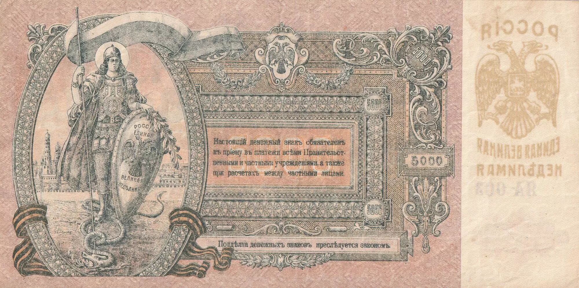 Billet Russie 5000 Roubles - Mercure, Aigle à 2 têtes - St George - 1919 - TTB à SUP - PS.419