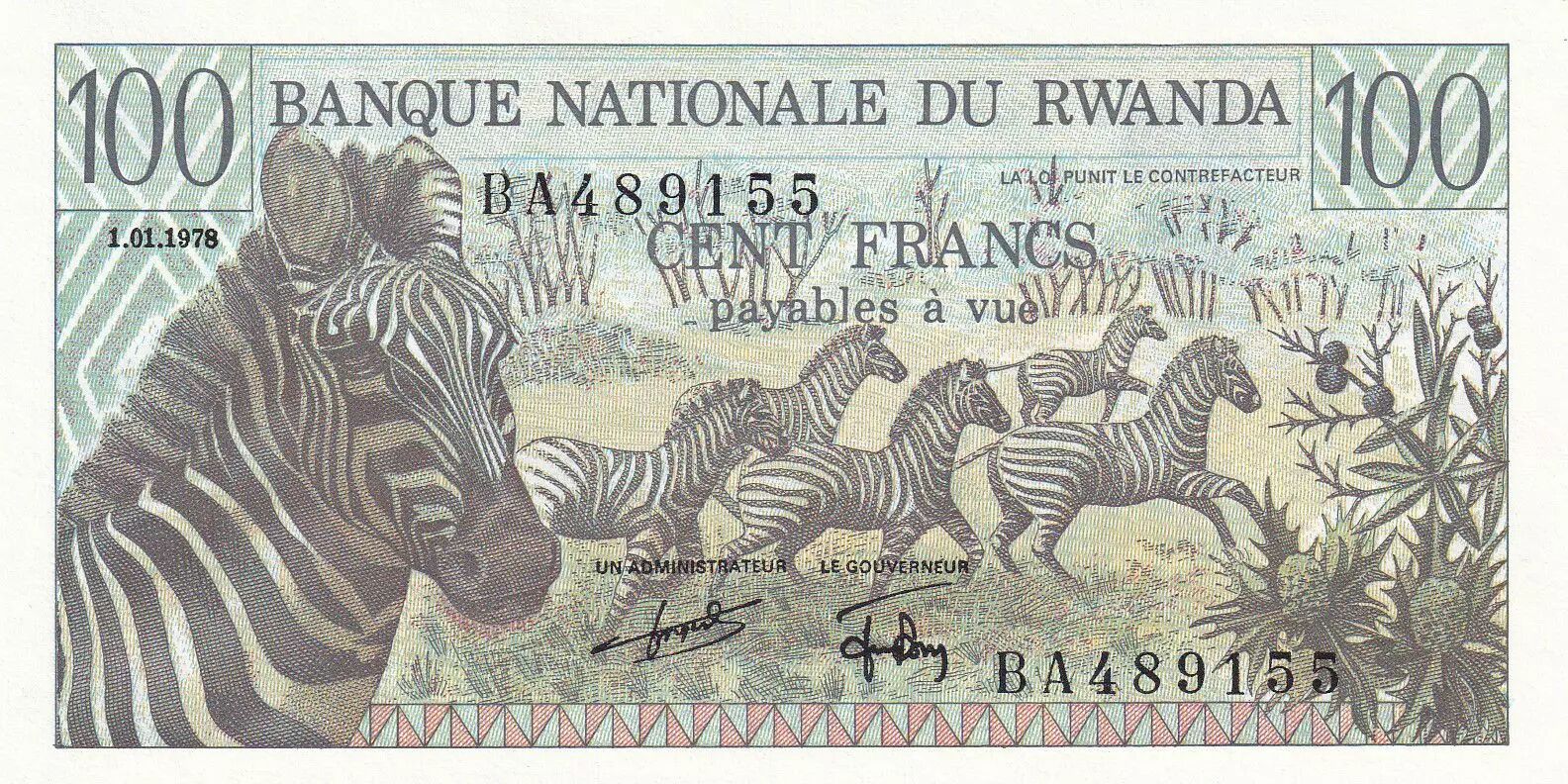 Home > > Rwanda 100 Francs - Zebras - Mountain - 1978 - P.12