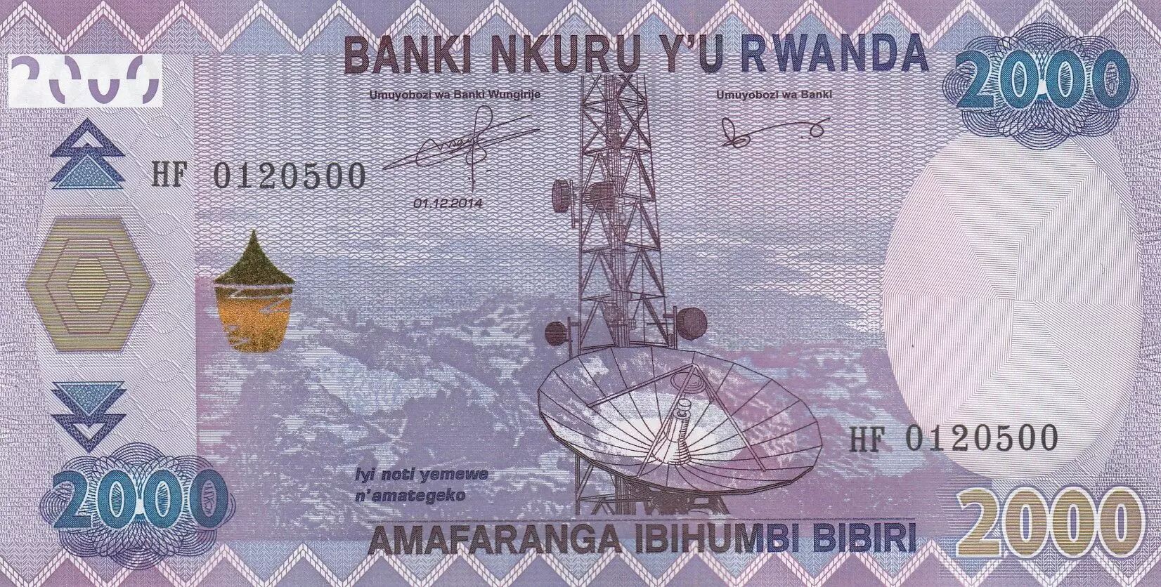 Billet Rwanda 2000 Francs Parabole - Café - 2014 - Série HF