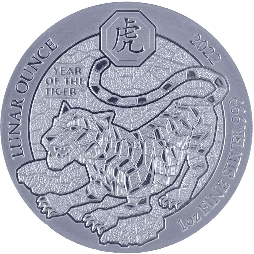 Le revers de la pièce met en scène un tigre. Des caractères chinois, signifiant "tigre", figurent également sur cette face. On y trouve aussi les indications de poids et de pureté de l'argent : "1 oz 999 FINE SILVER".
