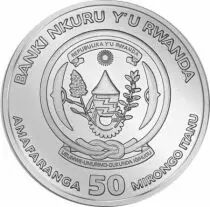Cette pièce commémorative, frappée en argent fin, est émise par le Rwanda. Elle a une valeur nominale de 50 francs rwandais.