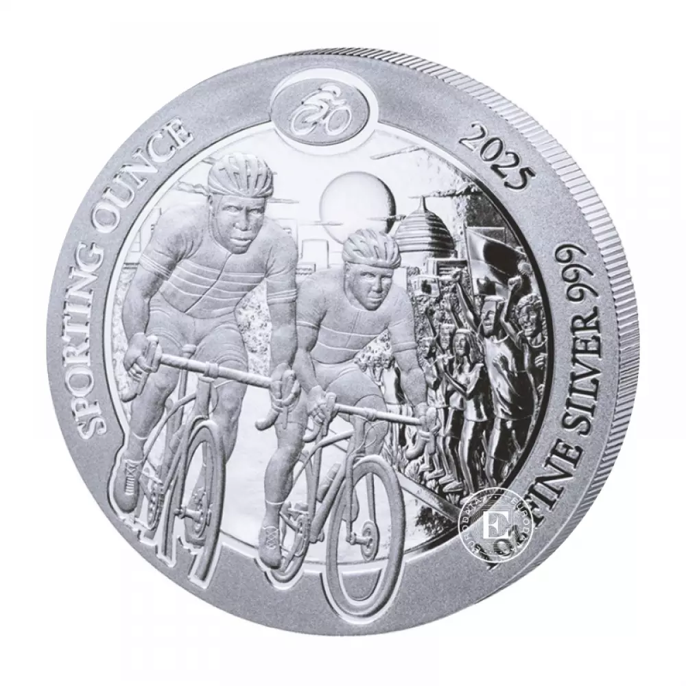 La pièce a un diamètre de 40 millimètres. Le motif principal de la pièce est le cyclisme, ce qui suggère qu'elle fait partie d'une série sportive.