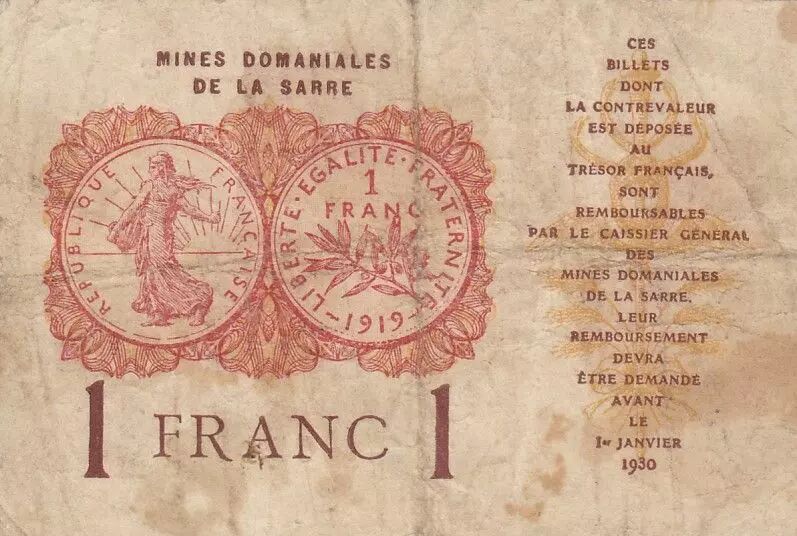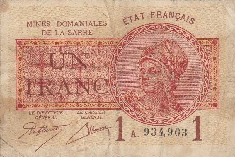 Home > > Saar 1 Franc - National Mines of Sarre - Type 1920 - Serial A - P.2
