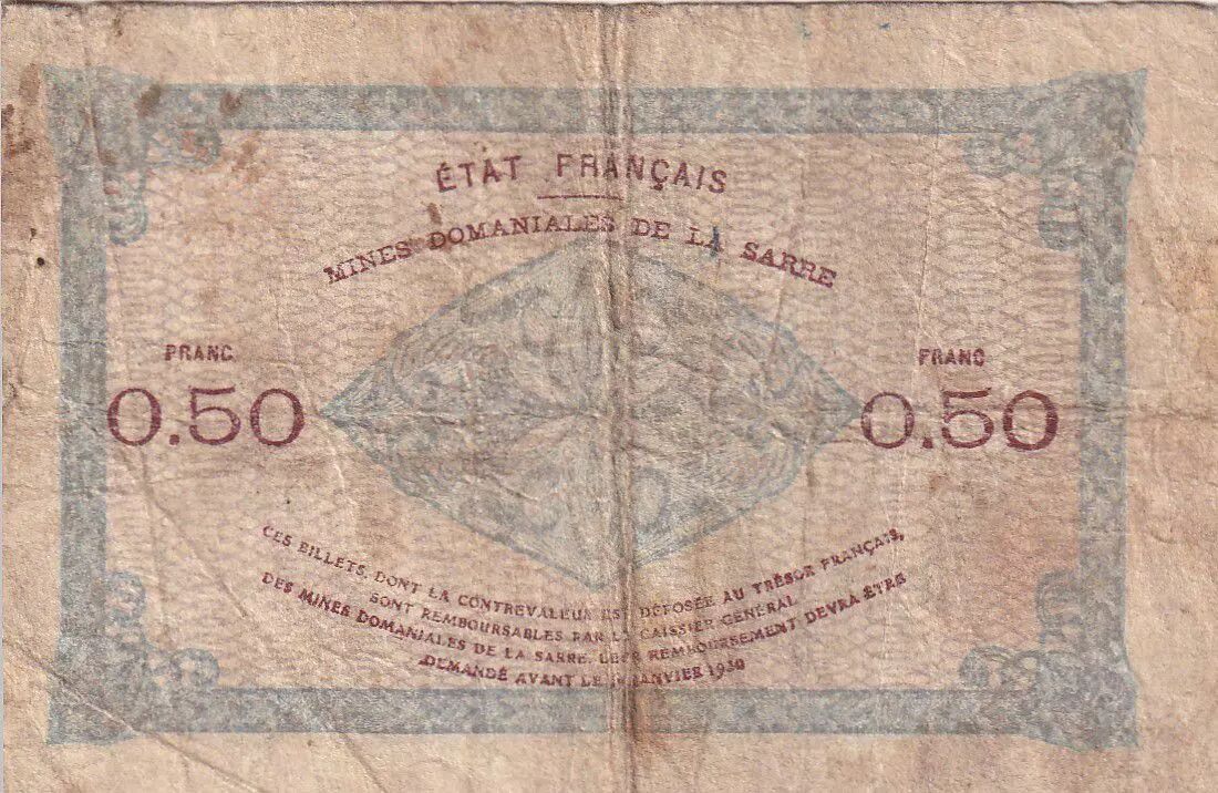 Banknote Saar 50 Centimes - National Mines of Saarland - Type 1920 - Serial B - P.1