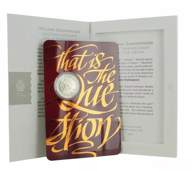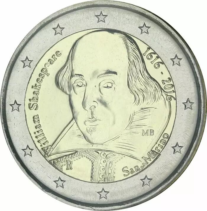 Il s'agit d'une pièce de collection qui rend hommage à William Shakespeare. Elle a été émise par Saint-Marin en 2016.