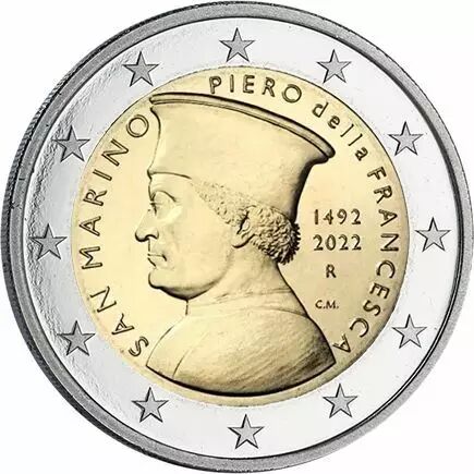 San-Marin consacre sa première 2 euros commémorative de 2022 à Piero della Francesca appelé également Pietro Borghese.