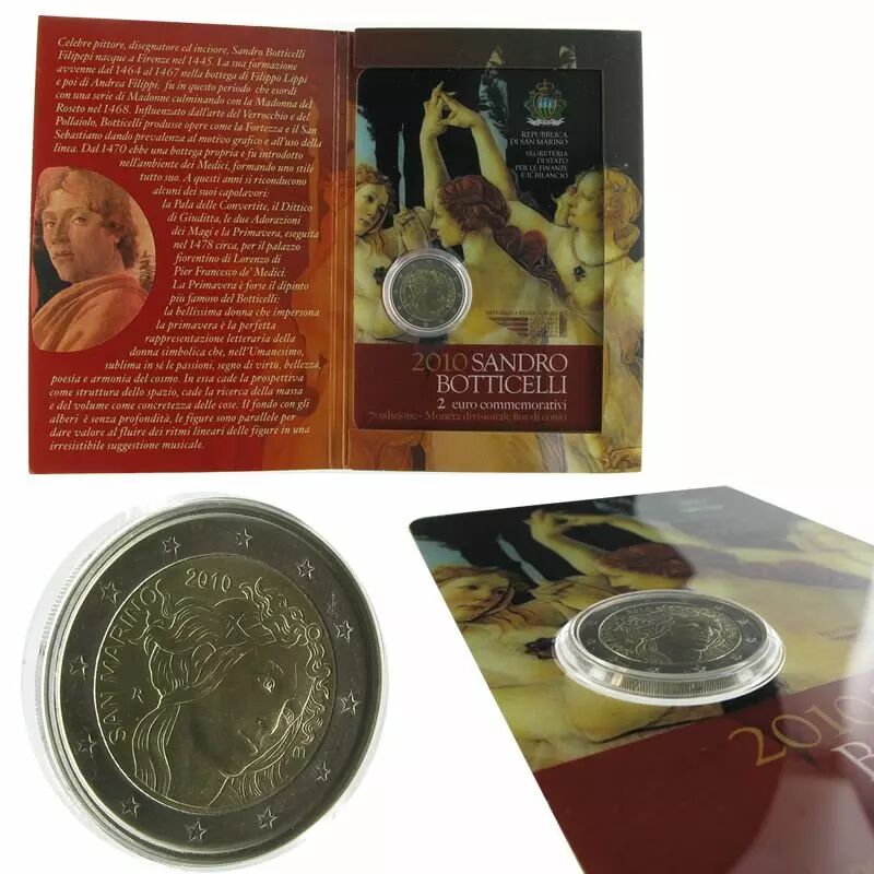 Cette pièce commémorative de 2 euros a été émise par Saint-Marin en 2010 pour marquer le 500e anniversaire de la mort de Sandro Botticelli.