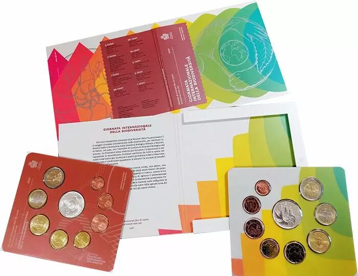Contient 8 pièces de la 1 cent à la 2 euros au millésime 2021 + 5 Euro Argent Journée Internationale de la Diversité biologique" (Argent 925 ‰ - 18g. - 32 mm) .