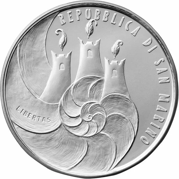 En 2017 San Marin a changé l'ensemble de ses visuels nationaux sur les pièves en euros que le pays émet. La 2 euros représente un détail du tableau de Urbinelli avec Saint Marin portant les trois "Tours" de la petite république. La 1 euro est illustré par le chateau de Cesta souvent appelé la Seconde Tour. La pièce de 50 est ornée du portrait de Saint Marin d'après Restrosi. Sur celle de 20 centimes on retrouve les trois Tours du Mont Titano symbole de San Marin. La façade de l'Eglise San Francisco est représentée sur la pièce de 10 centimes et celle de San Quirino sur celle de 5 centimes. La pièce de 2 centimes est illustrée par la porte de la ville alors que la pièce de 1 centime a les armoiries de Saint Marin comme illustration .
