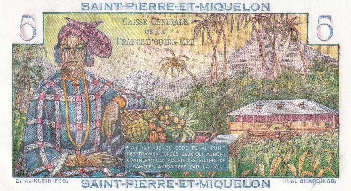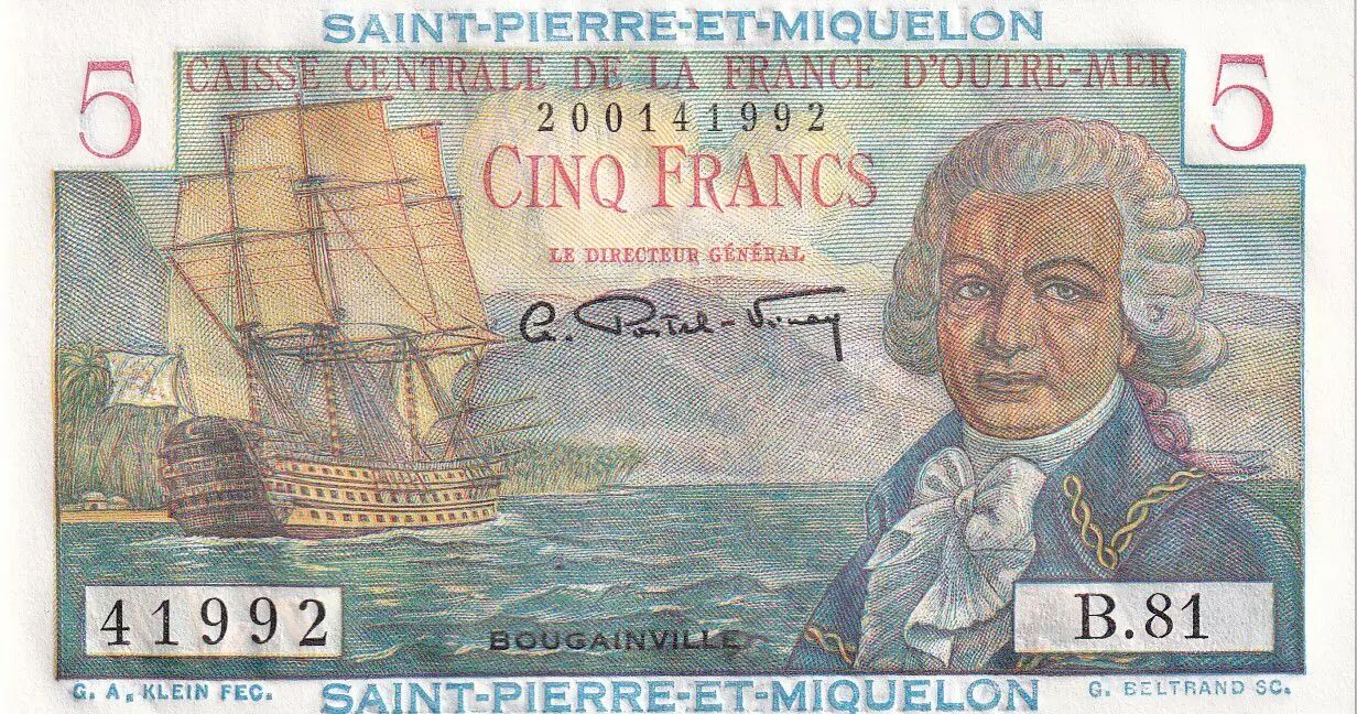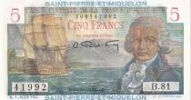 Home > > Saint Pierre & Miquelon 5 Francs - Bougainville - ND (1950-1960) - Serial B.81 - P.22