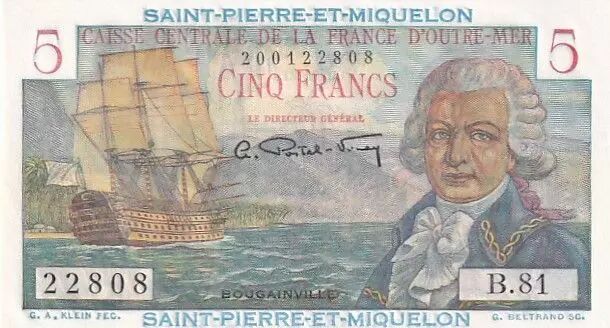 Home > > Saint Pierre & Miquelon 5 Francs - Bougainville - ND (1950-1960) - Serial B.81 - P.22