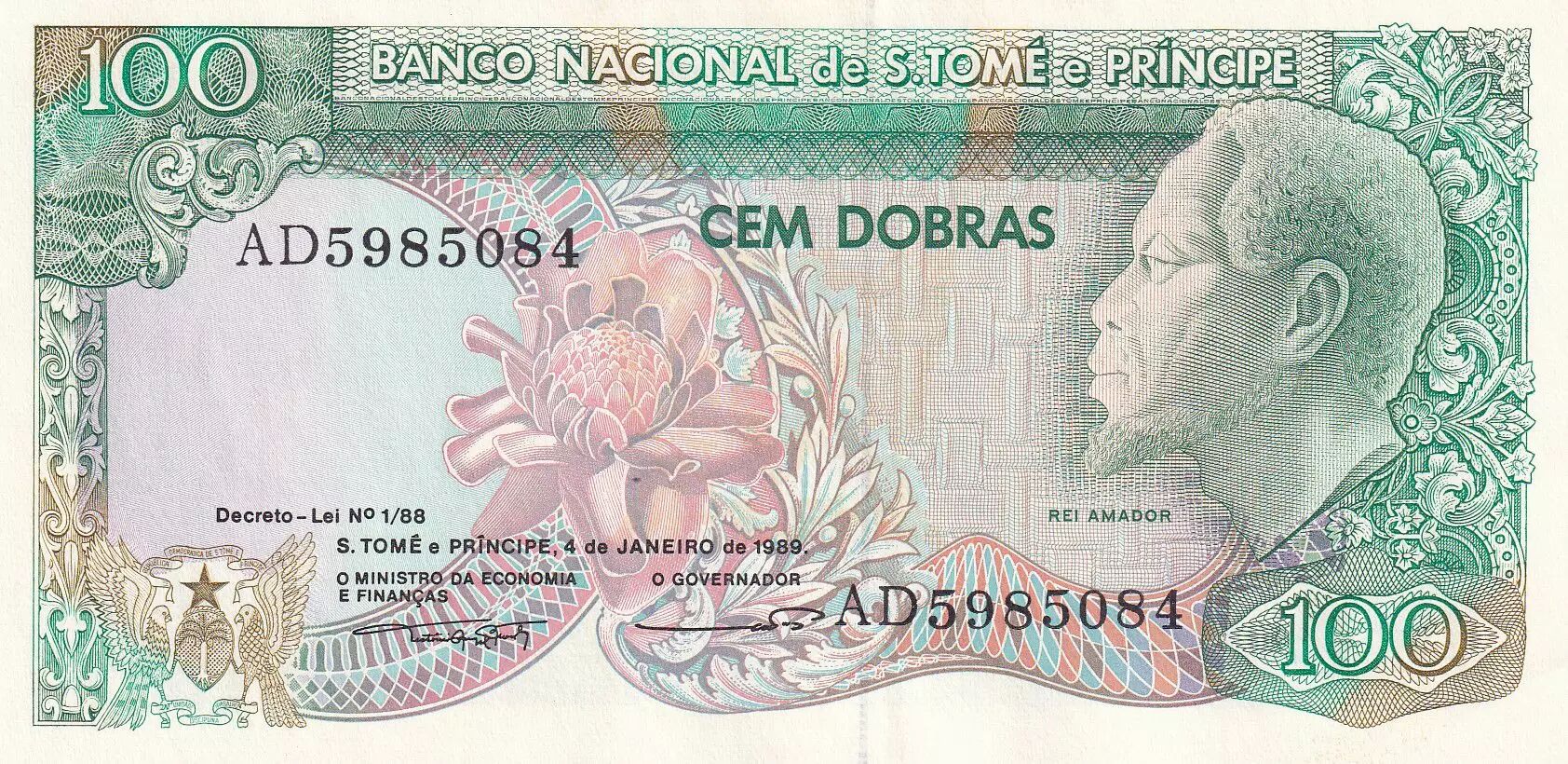Home > World Banknotes > African Banknotes > São Tomé and Príncipe > Saint Thomas and Prince 100 Dobras - King Amador - 1989 - P.60