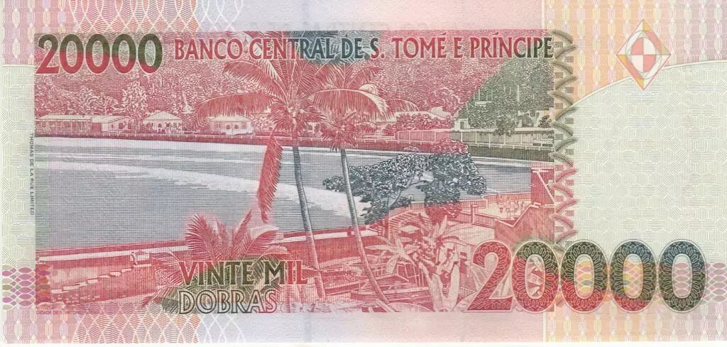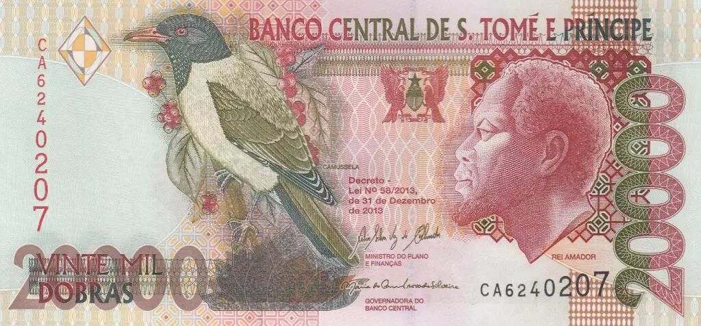 Banknote Saint Thomas and Prince 20000 Dobras King Amador, bird - Beach - 2013