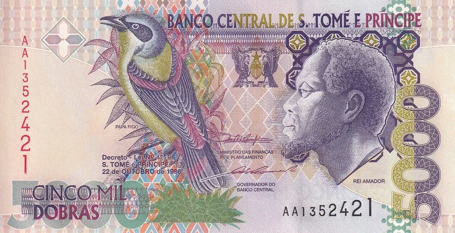 Banknote Saint Thomas and Prince 5000 Dobras - King Amador - Papa Figo - 1996 - Serial AA - P.65a