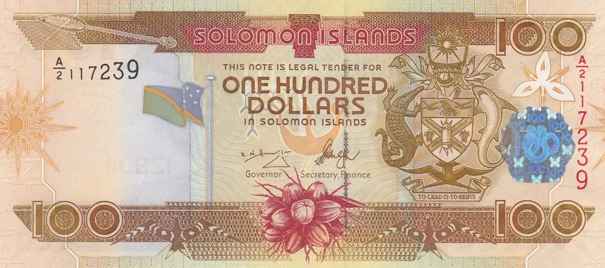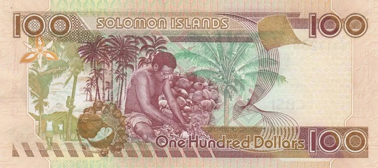 Accueil > Billets du Monde > Billets d'Océanie > Iles Salomon > Salomon (îles) 100 Dollars - Armoiries - Noix de coco - 2006 - P.30a