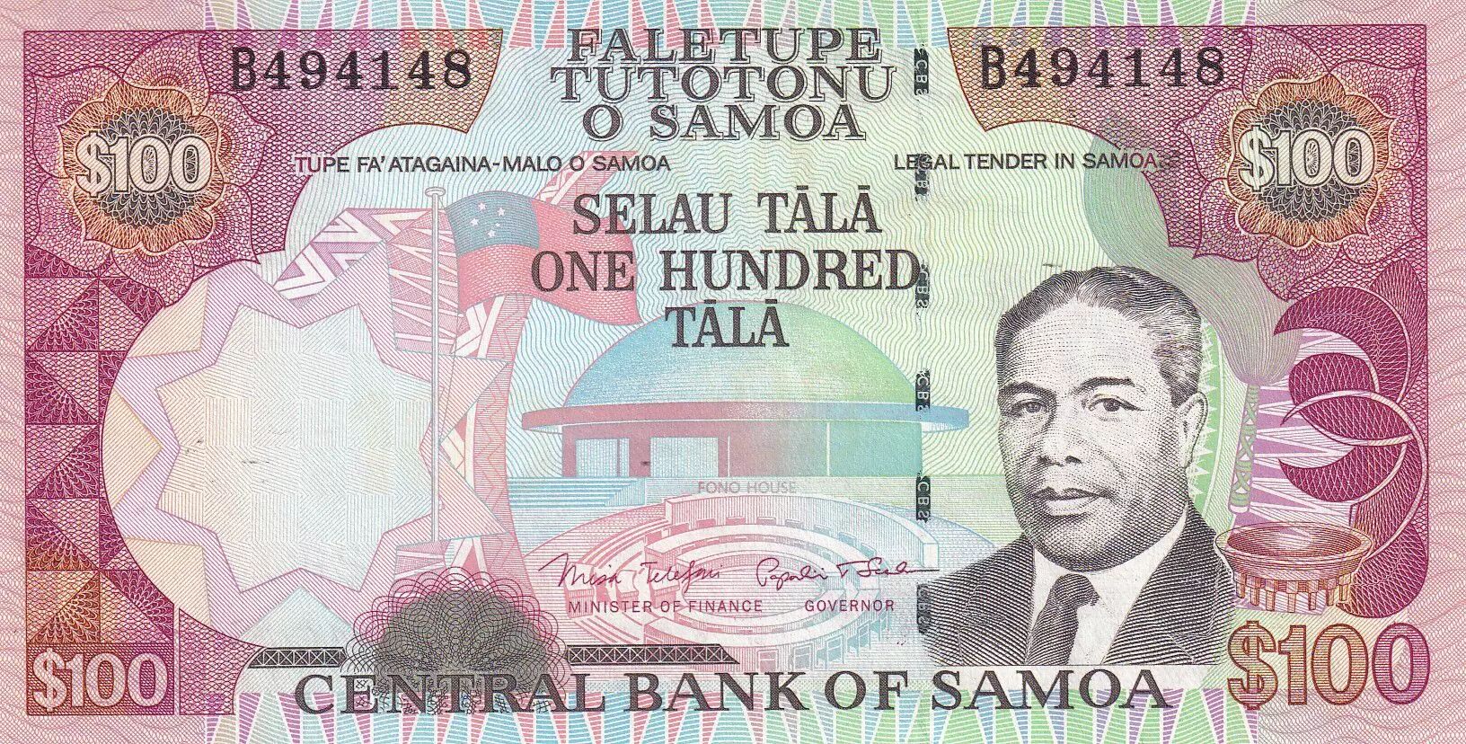 Accueil > Billets du Monde > Billets d'Océanie > Samoa > Samoa 100 Tala - Malietoa Tanumafili - Agriculture - ND (2006) - Série B - P.37