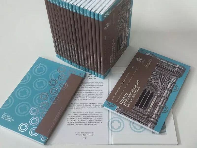 This 2 euro commemorative coin was issued by San Marino in 2017, in tribute to the 750th anniversary of the birth of Giotto di Bondone, Italian sculptor and painter born in 1267. The coin is bi-metallic, weighing 8.5 grams and with a diameter of 25.75 millimeters.
