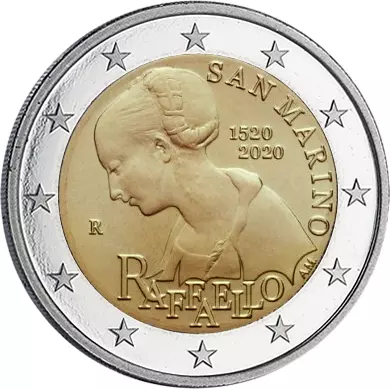 This 2 euro commemorative coin was issued by San Marino in 2020 to mark the 500th anniversary of Raphael's death.