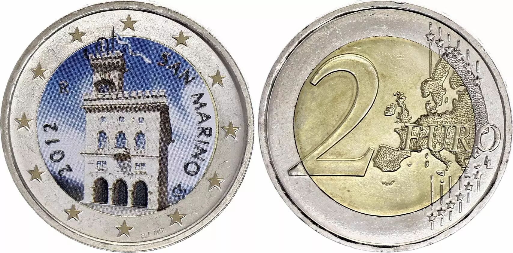 Coin San Marino 2 Euros - Palazzo Publico - Colorised - 2012 - Bimetallic