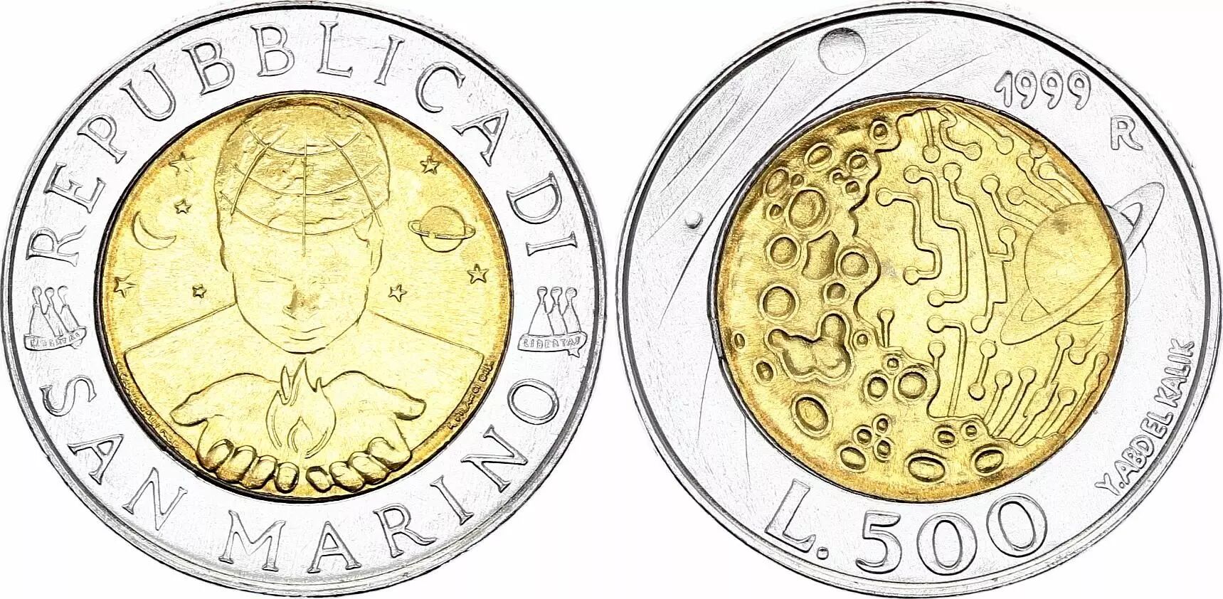 Moon surface, radio waves and Saturn. Date and studio mark top right, value below.