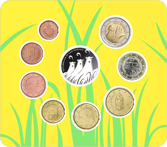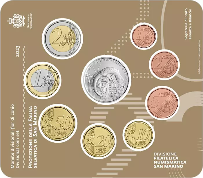 Contains 8 coins from 1 cent to 2 Euros in the year 2023 + 5 Euros Silver