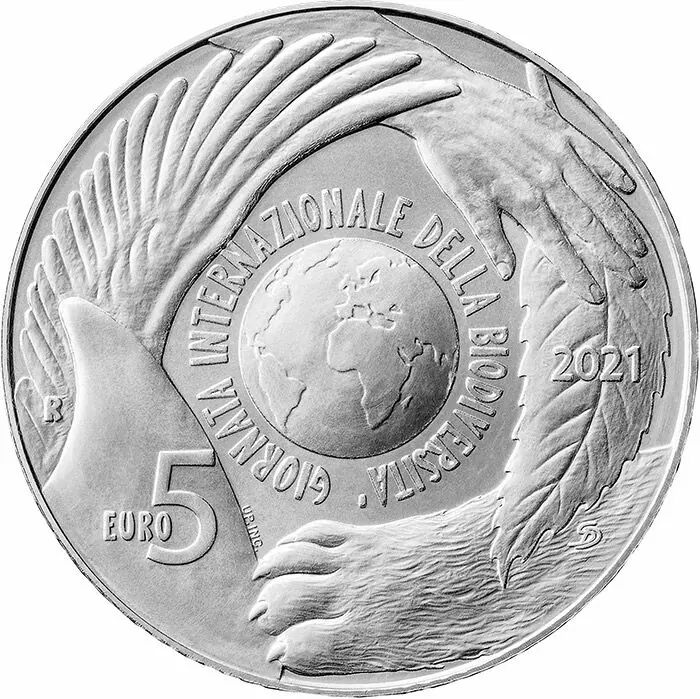 Contains 8 coins from 1 cent to 2 euros in the year 2021 + 5 Euro Silver International Day of Biological Diversity’ (Silver 925 ‰ - 18g. - 32 mm) .