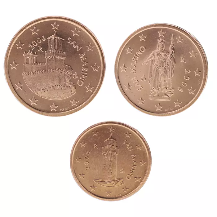 Set of 3 coins of 1, 2 and 5 centimes 2006 Saint Marin