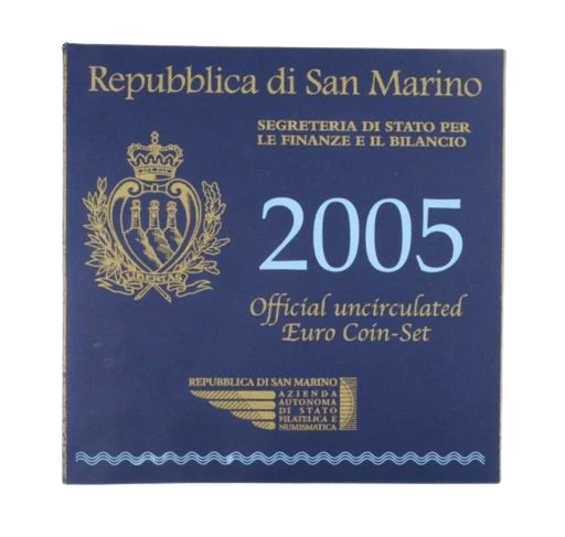 The San Marino 2005 BU set is an official numismatic set issued by the Republic of San Marino. It includes a total of nine coins, representing all the euro values issued by the country that year, as well as a commemorative silver coin.