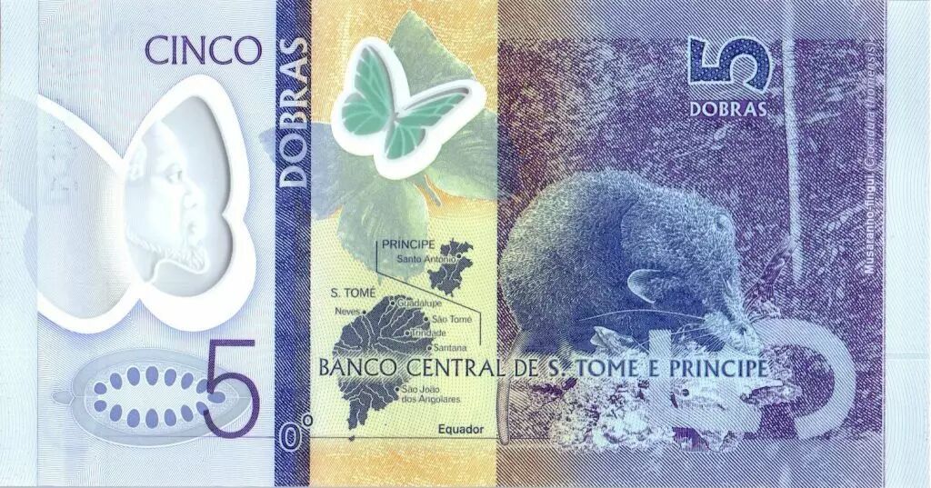 Billet Sao Tomé-et-Principe 5 Dobras - Papillons - Musaranho - Polymer - 21-10-2016 - Série AA