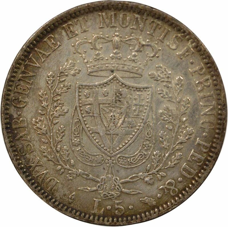 Pièce Sardaigne Charles-Felix - 5 Lire Argent - 1828 L Turin
