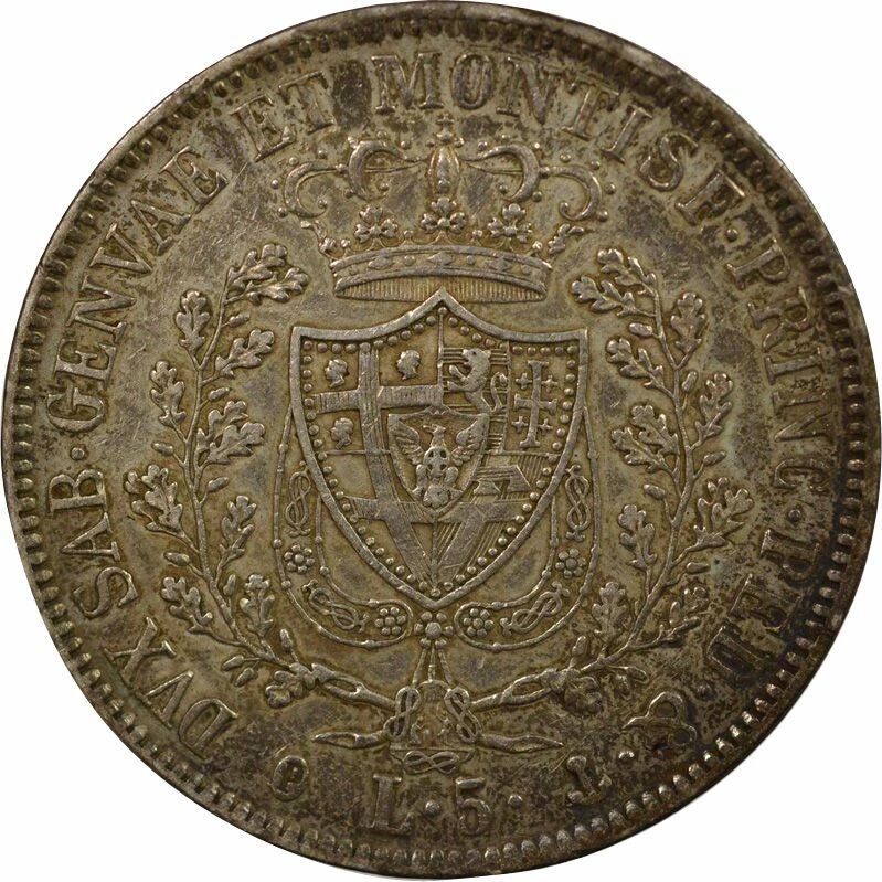 Accueil > Archivage > archivage-Monnaies du monde > Sardaigne Charles-Felix - 5 Lire Argent - 1829 P Gênes