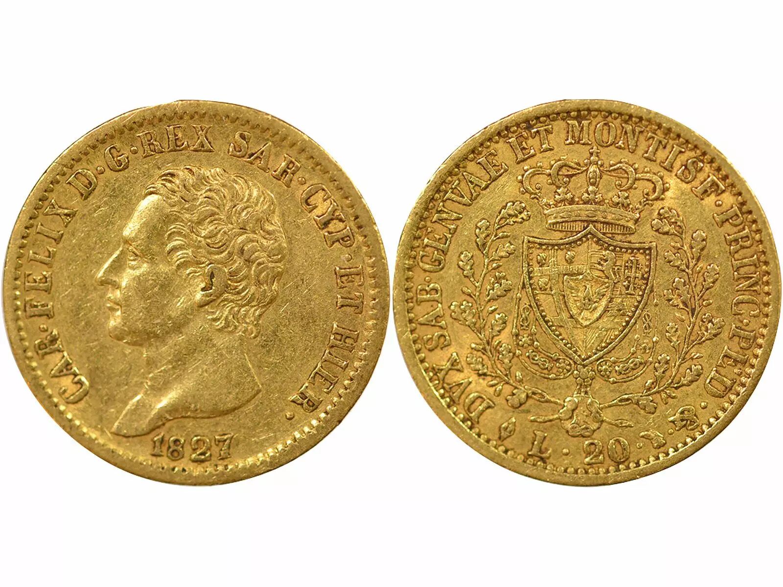 Coin Sardinia Charles Felix - 20 Gold Lire - 1827 L Turin