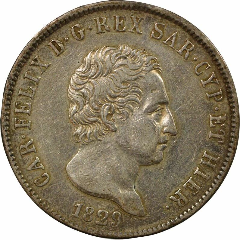Home > World Coins > European Currencies > Italy - Italian States > Sardinia > Sardinia Charles-Felix - 5 Silver Lire - 1829 P Genoa