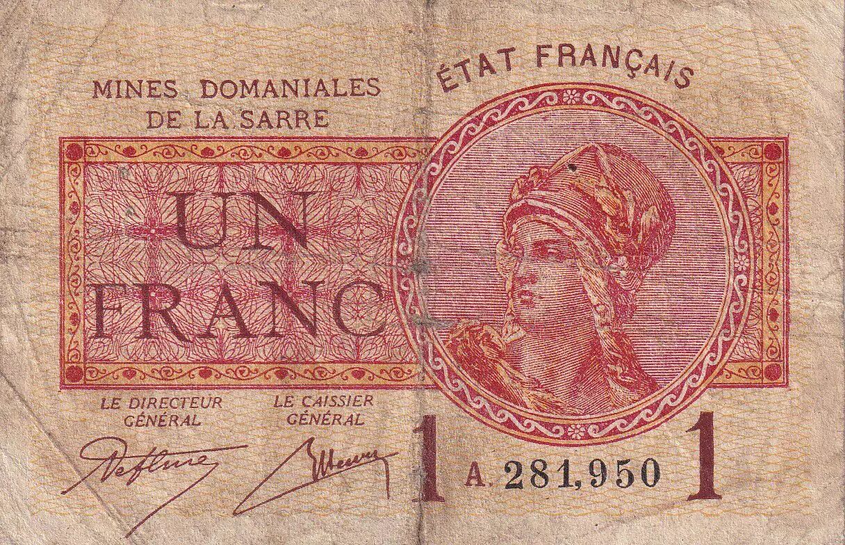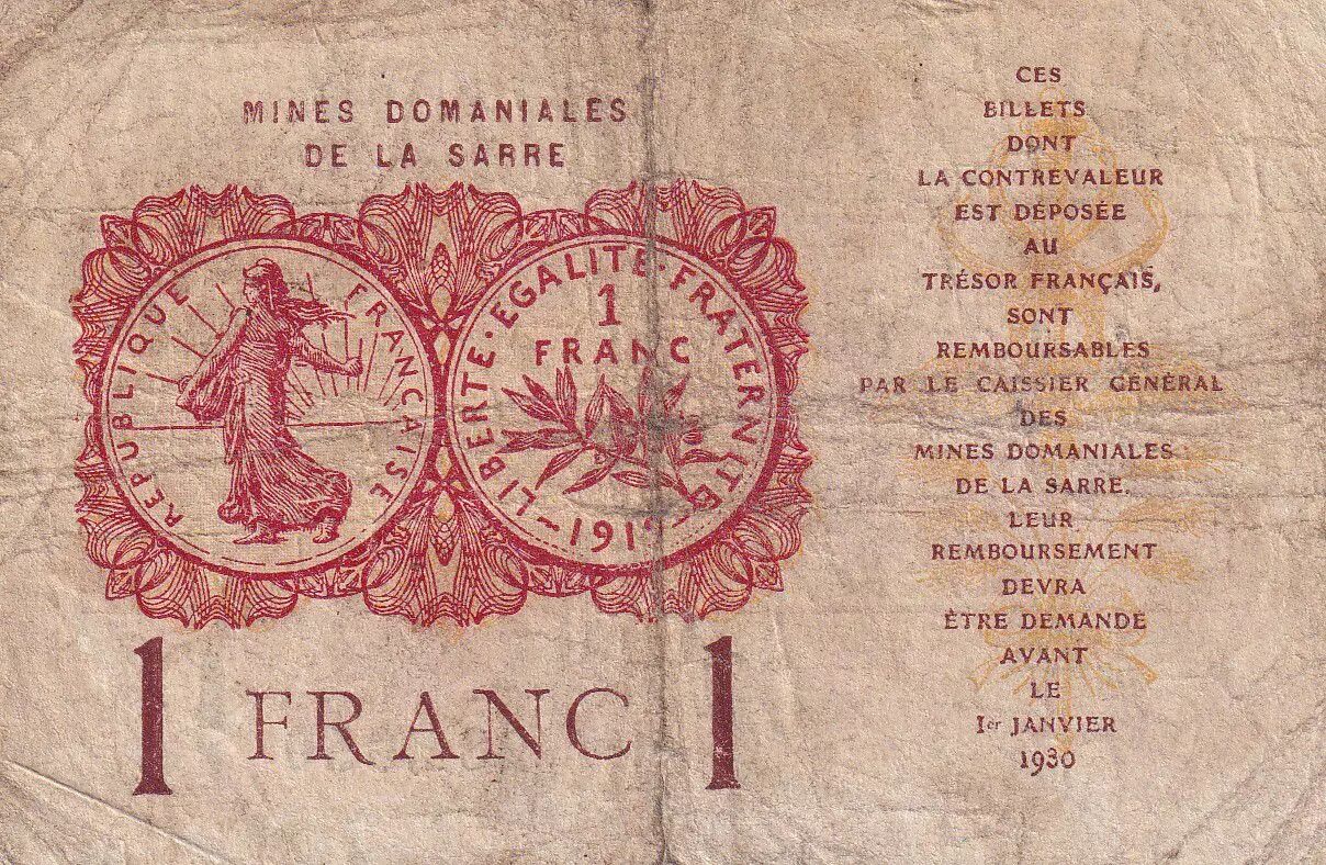 Billet Sarre 1 Franc - Mines Dominiales de la Sarre - Type 1920 - Série A - VF.51.01