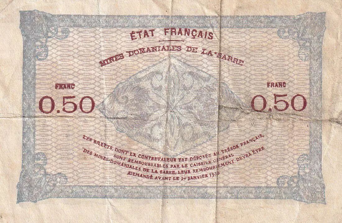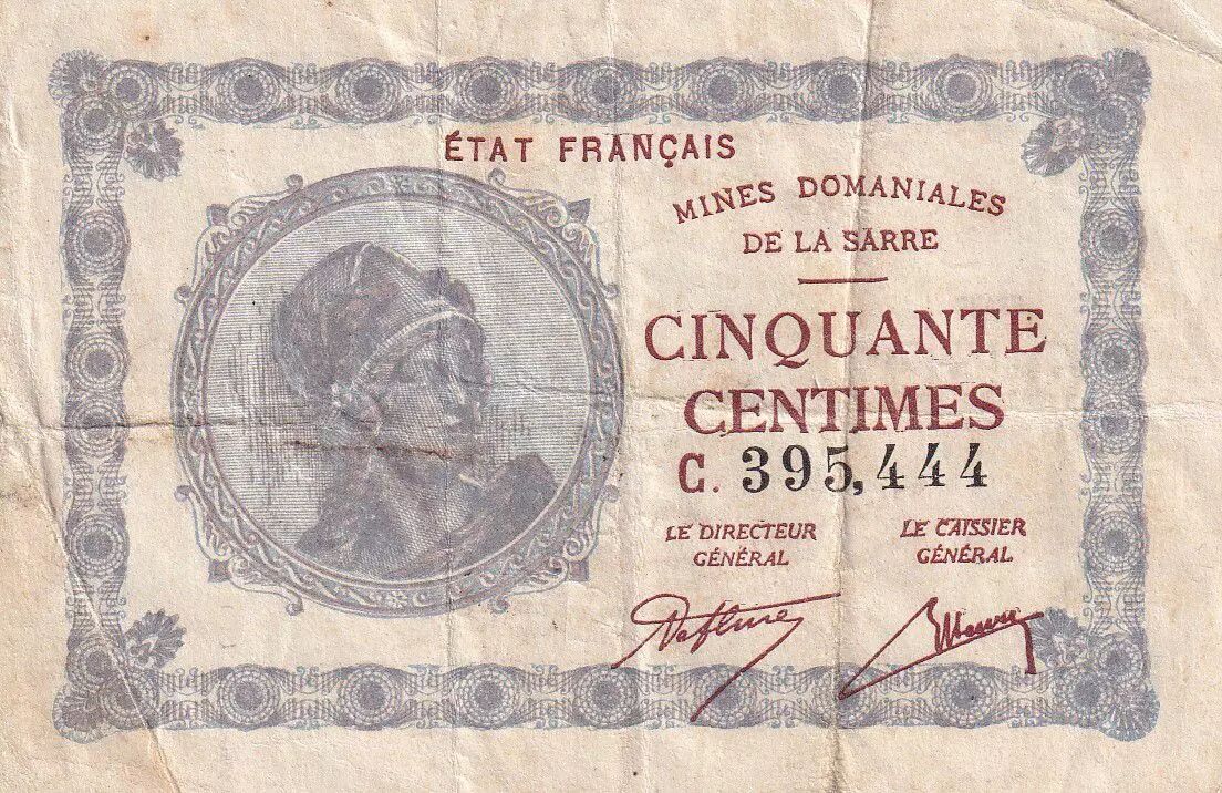 Accueil > Archivage > Sarre 50 Centimes - Mines Domaniales de la Sarre - Type 1920 - Série C - VF.50.03