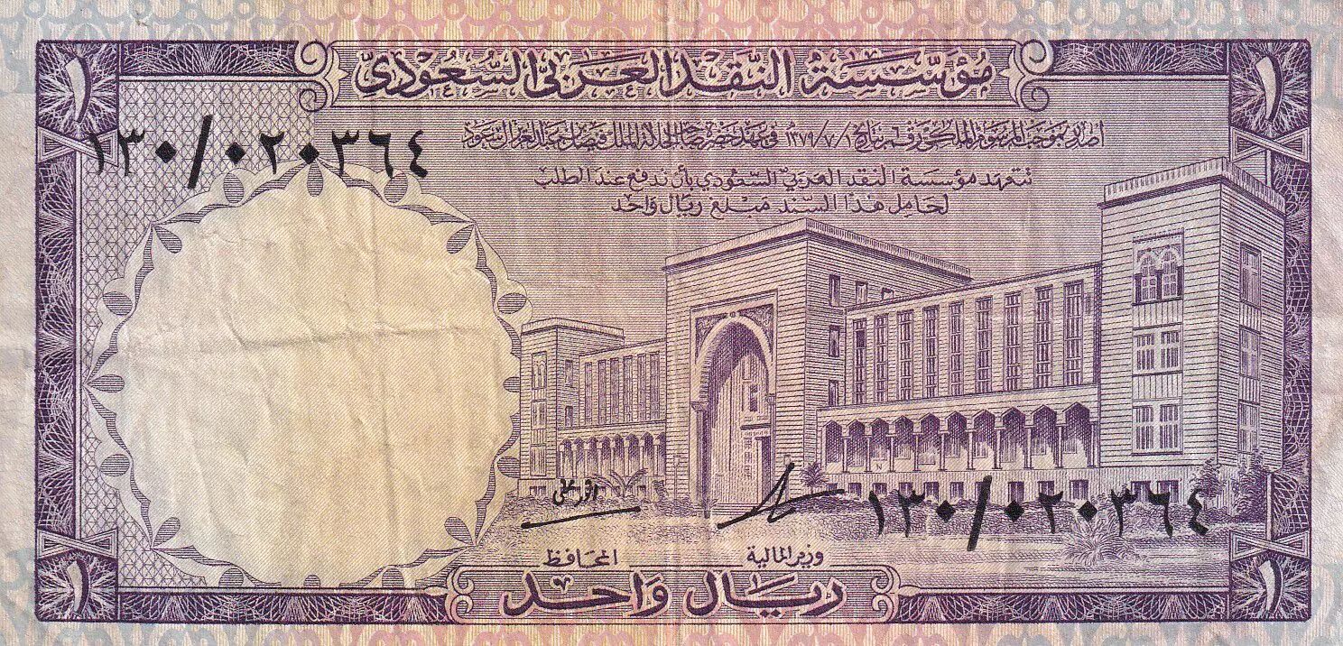Banknote Saudi Arabia 1 Riyal - Governement building - Arms - 1968 - P.11a