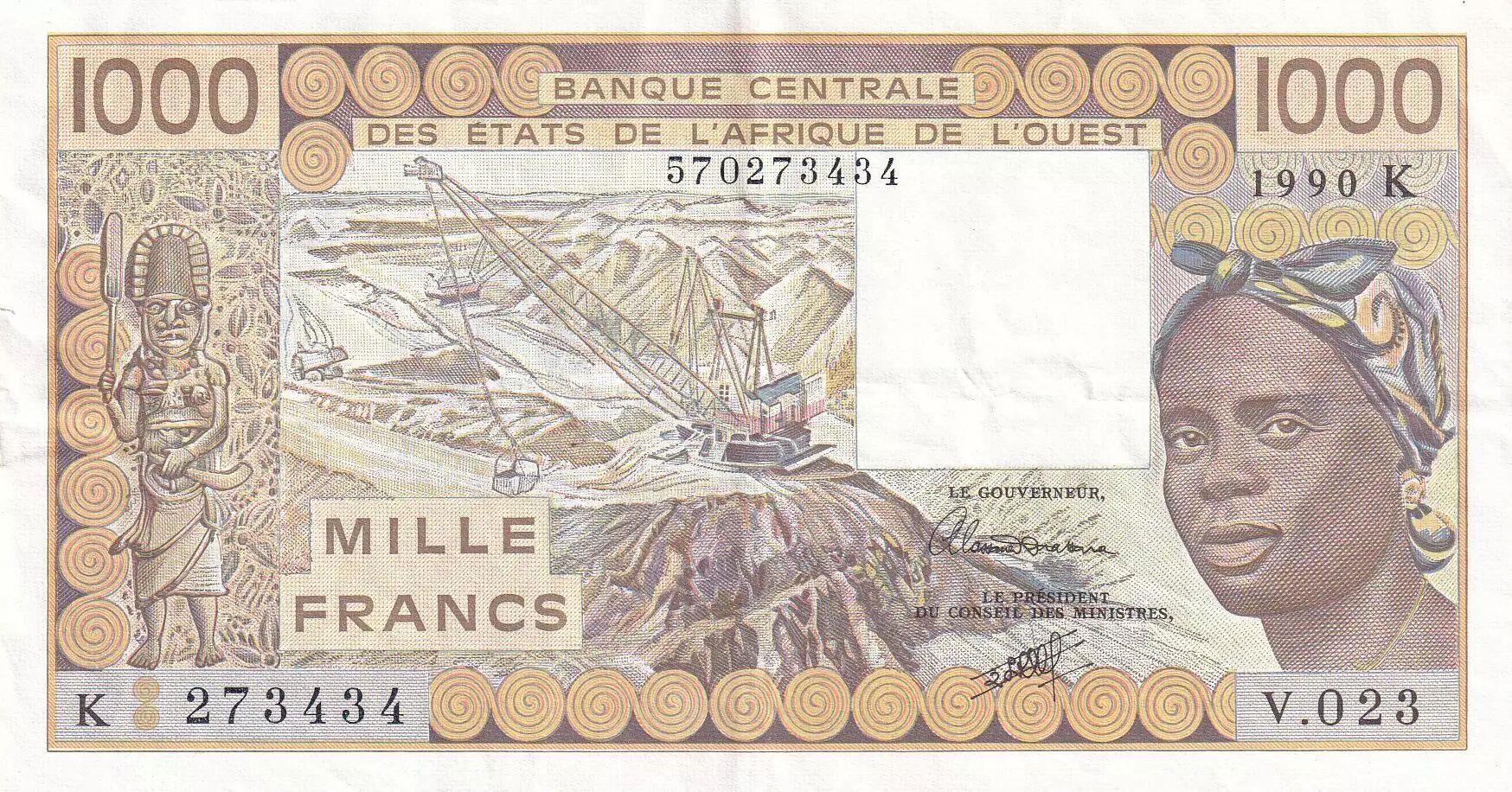 Home > > Senegal 1000 Francs - Woman - 1990 - Letter K (Senegal) - Serial V.023 - P.707Ki