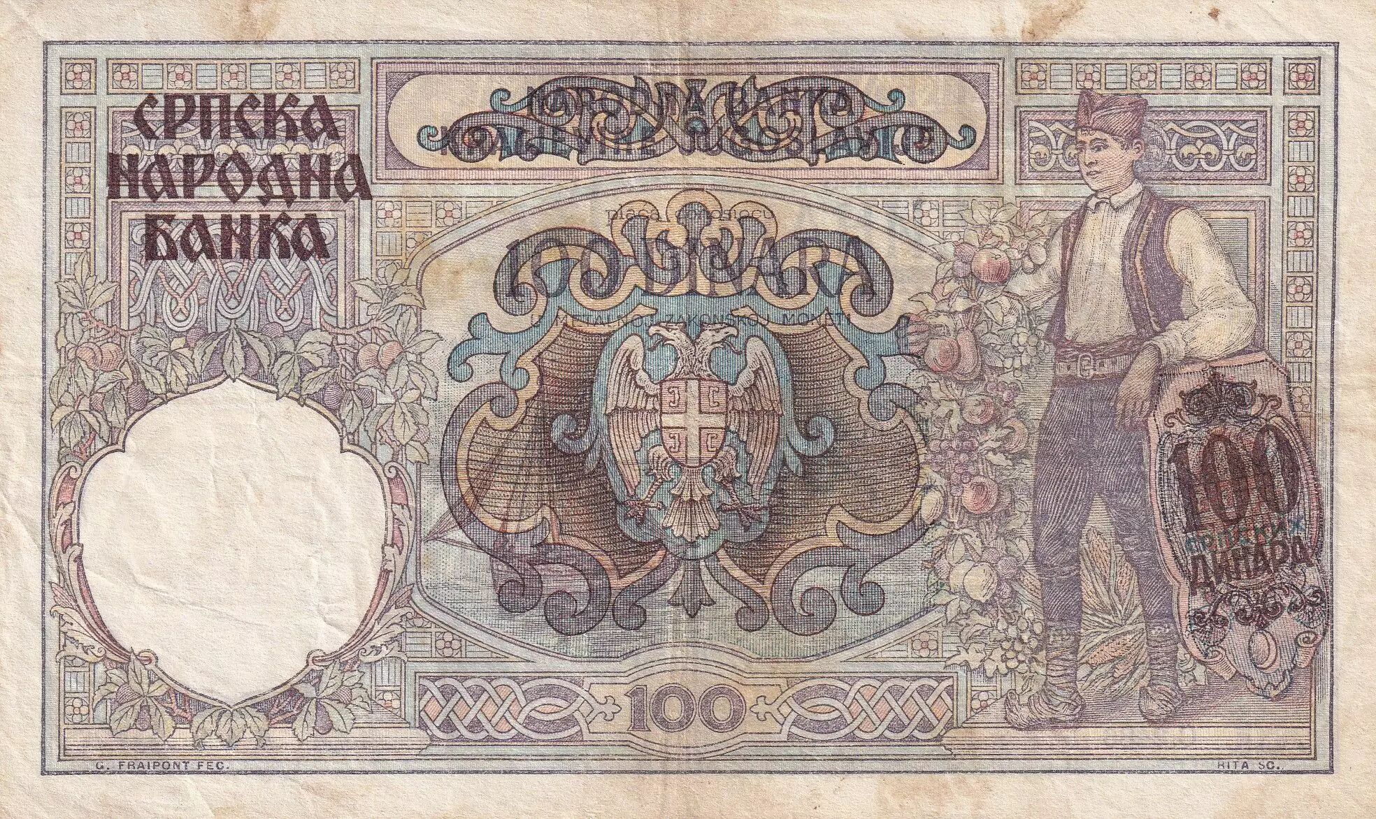 Banknote Serbia 100 Dinara - Woman seated - Farmer - 1941 - Serial C.2486 - P.23